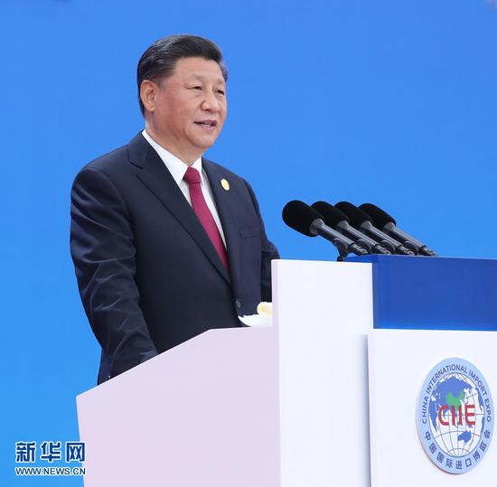 在热烈的掌声中,习近平宣布,第二届中国国际进口博览会正式开幕。习近平发表主旨演讲。
